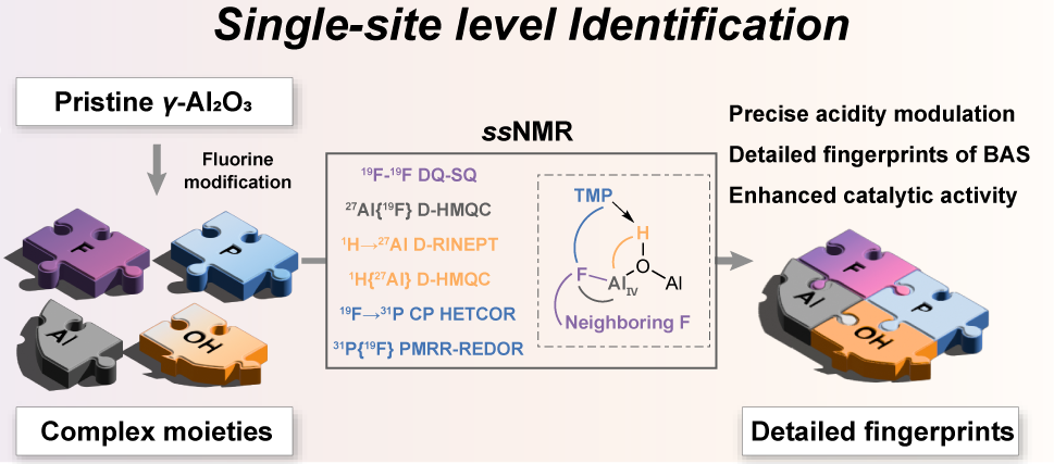 Single-site level identification of strong Brønsted acid site in fluorinated Al2O3 revealed by advanced solid-state nuclear magnetic resonance (Image by Zhang Huizhen)