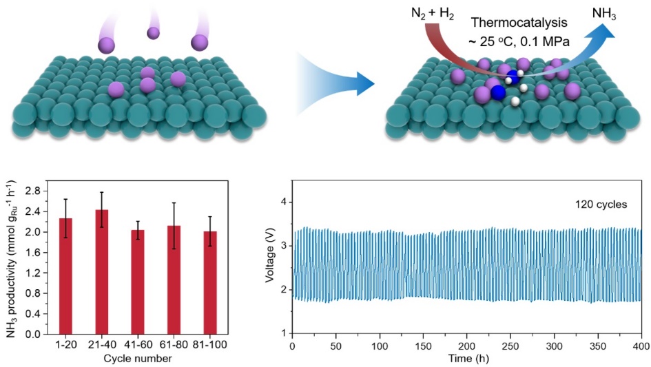 In a study published in Chem, a research team led by Prof. DENG Dehui and Prof. YU Liang from the Dalian Institute of Chemical Physics (DICP) of the Chinese Academy of Sciences (CAS), along with Prof. CUI Yi from the Suzhou Institute of Nano-Tech and Nano-Bionics of CAS, developed a novel catalyst which enables thermocatalytic conversion of N2 and H2 to NH3 at room temperature and ambient pressure.