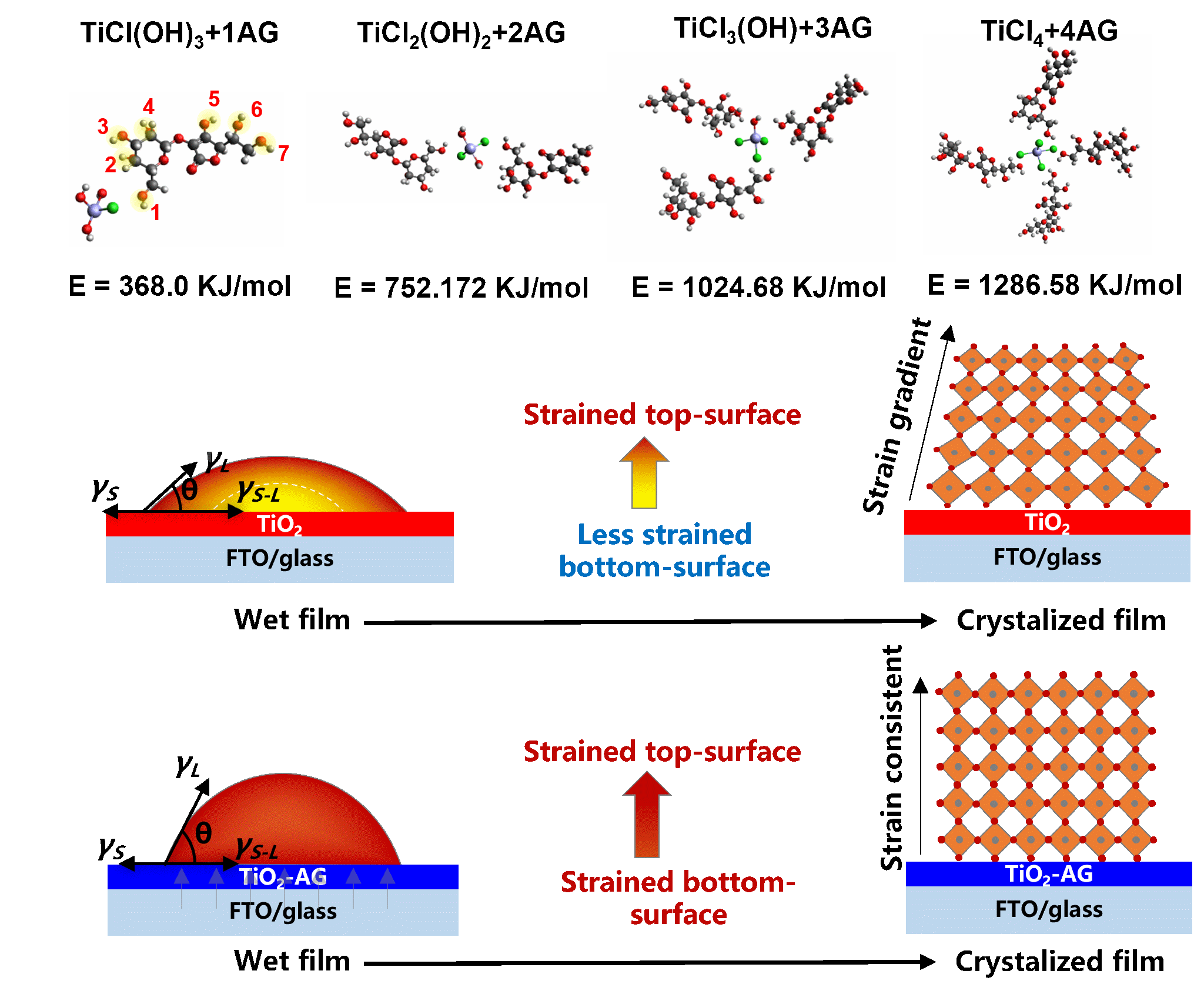 Researchers incorporated ascorbyl glucoside into TiO2 nanocrystals synthesized hydrothermally from TiCl4, thereby reducing the surface energy of the TiO2 electron transport layer and inducing lattice stress relaxation in the bottom region of the perovskite film at the liquid/solid/air triple-phase interface. By precisely regulating the crystallization dynamics at this interface, the crystallization quality and microstructural uniformity of the perovskite film were improved.